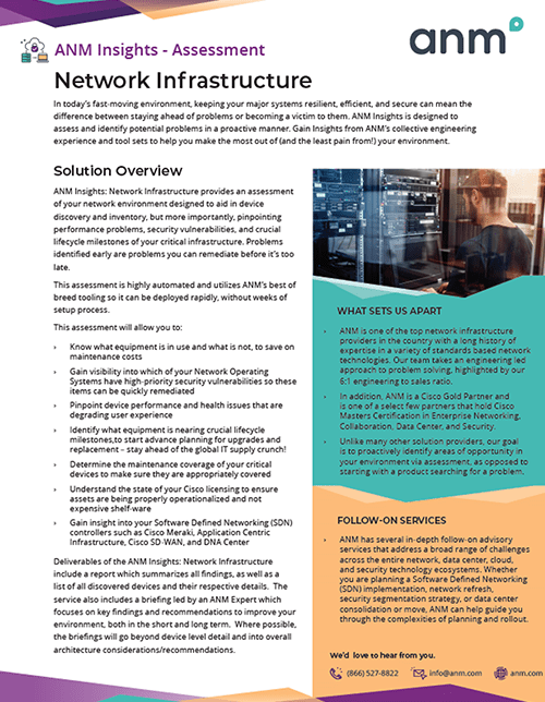 ANM is a Cisco Master Certified Security partner, with expertise in cybersecurity architectures and services. With six engineers per salesperson and a series of engineering led workshops designed to create tailored solutions, we can help your organization get more from your security spend.